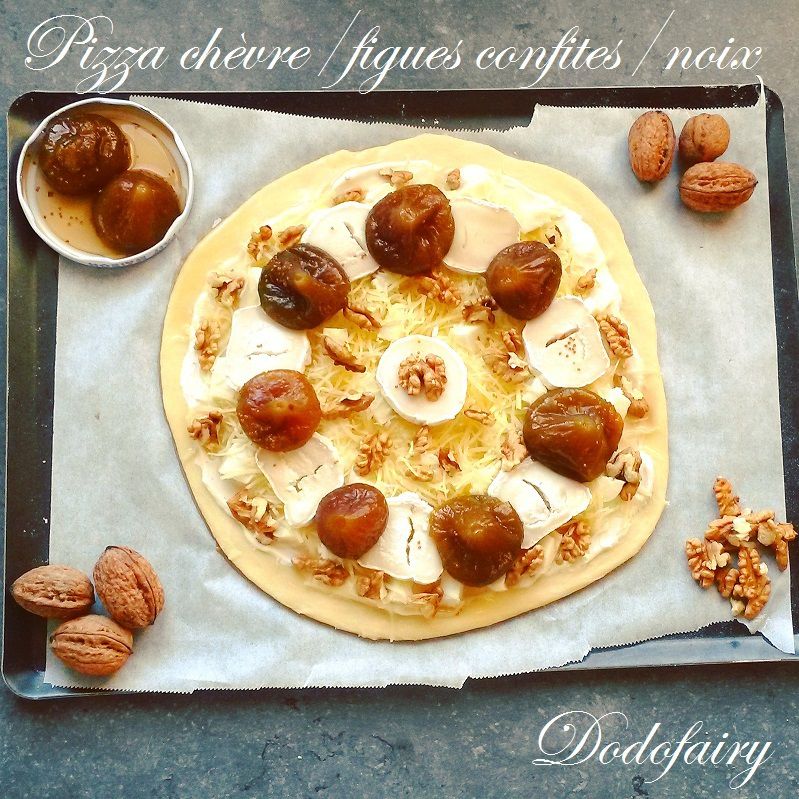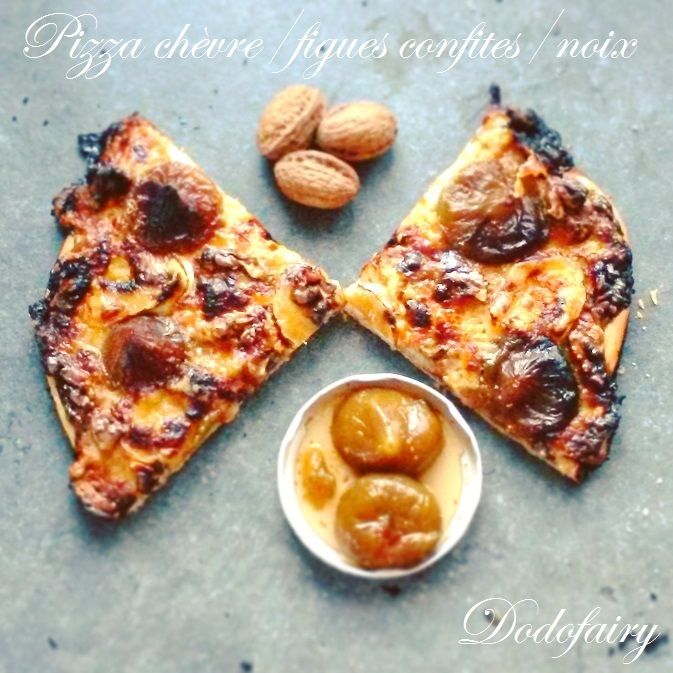 Une pizza à base de fromage de chèvre, figues confites et noix!! Un délice!!