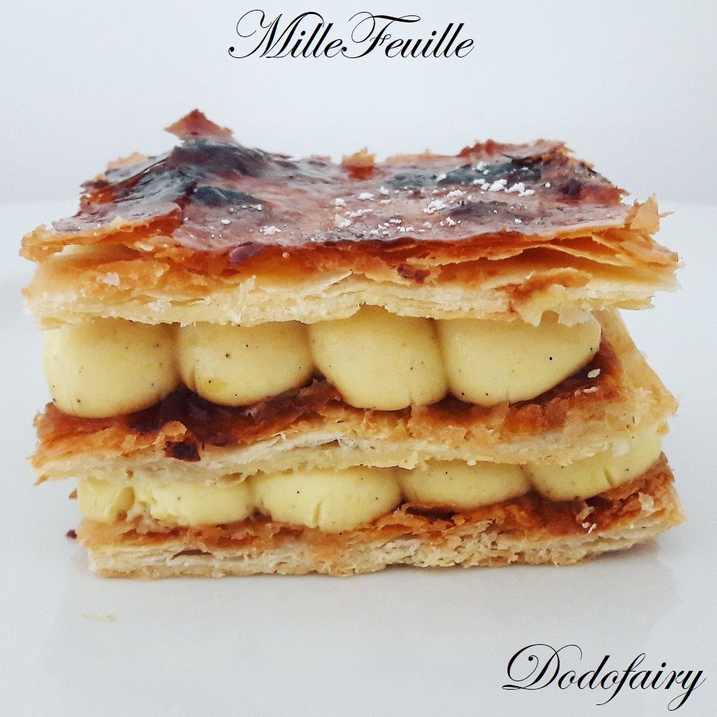 Mettre la crème à la vanille dans une poche à douille et en disposer sur les dessus de 2 pâtes feuilletées coupées, le dernier étage de pâte feuilletée servant à fermer le millefeuille.