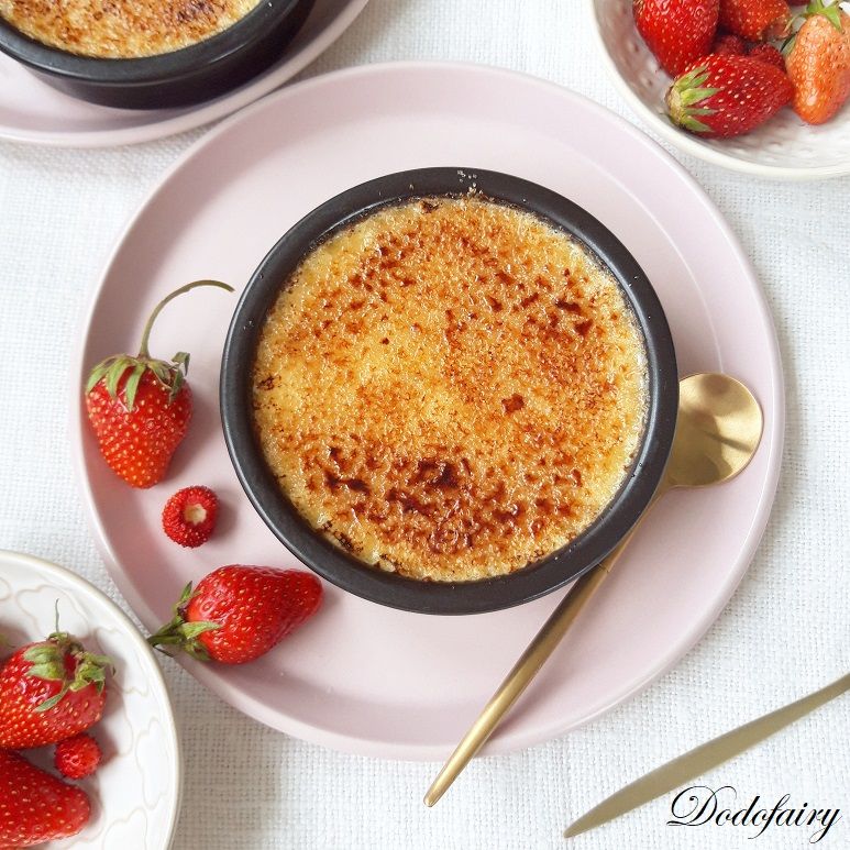 Le jour J, déposer de la cassonade sur la crème et caraméliser au chalumeau.